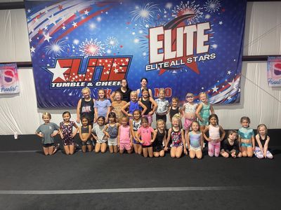 Elite: Athletes in the Elite level group have the necessary skills to perform a standing back handspring, round off back handspring, front limber, back walkover, whip and dive cartwheel. They will work towards skills such as back tucks, aerials, layouts, fulls, whips, combination alternate passes, standing back tucks and other advanced standing tumbling skills.  $40 a month.